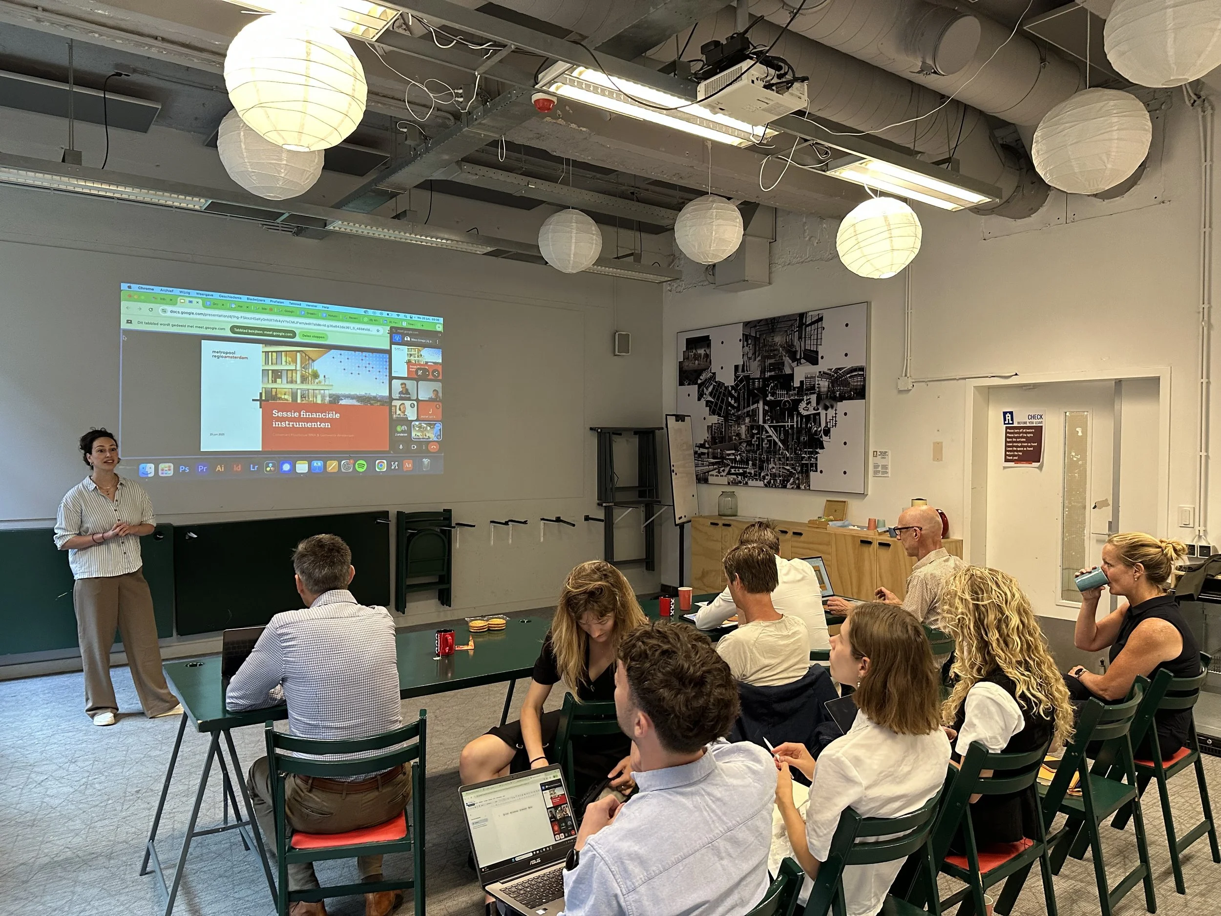 In het tweede deel ging Mees Eringa in op een aantal financiële instrumenten met het doel om te kijken welke het meeste potentie biedt voor de gemeente Amsterdam, welke instrumenten nog missen, en of er eventueel vervolgstappen gezet kunnen worden.